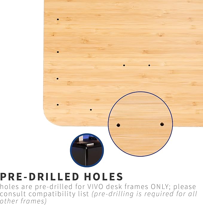 - Compatibility - Fits both manual and electric frames measuring 51" to 70" in length, including VIVO models: DESK-E151EB / DESK-E151EW, DESK-M051MB / DESK-M051MW, DESK-V100EB / DESK-V100EW, DESK-V101EB / DESK-V101EW, DESK-V101M / DESK-V101MW, DESK-V102E / DESK-V102EW, and DESK-V103E / DESK-V103EW. Please Note: The pre-drilled holes fit our VIVO desk frame models. Pre-drilling will be required to fit most other desk frames.
