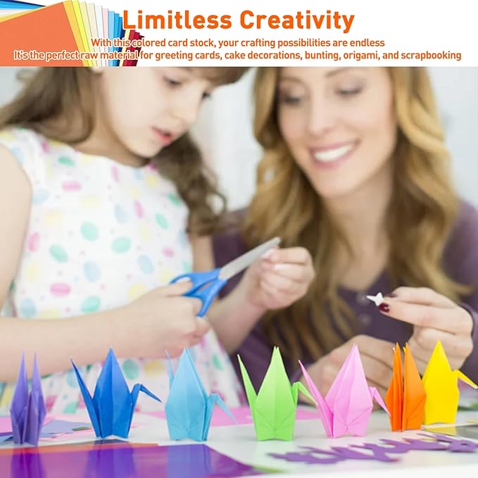 - 【Wide Applications】Our colored cardstock is perfect for teachers' school supplies and parents' home activities. The vibrant colors help children with color recognition, stimulate imagination, and develop practical skills. It's great for educational games, crafts, and as gifts for kids, students, adults, and art lovers. Additionally, colored construction paper can be used for decorations at weddings, anniversaries, birthdays, parties, and holidays like Easter, Valentine's Day, Halloween, and Christmas.