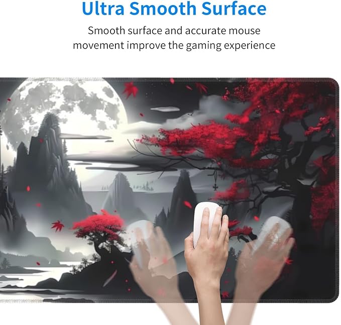 - 💻【ULTRA-SMOOTH SURFACE】: This large mouse pad adopts superfine Lycra cloth on cover, which will make your mice glide on its surface smoothly. Provides you frustration-free mouse movement. Optimized for fast movement while maintaining excellent speed and control during your work or game, available for mechanical, wireless and optical mice.