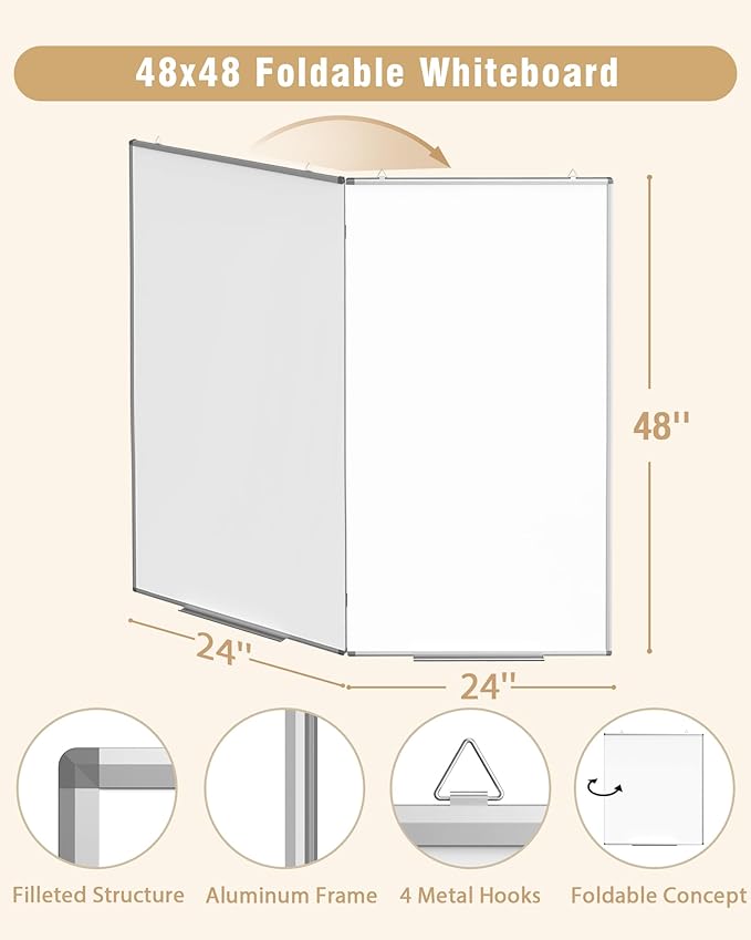 48"X 48" Large Magnetic Dry Erase Whiteboard, Removable Wall Hanging Board with 4 Pens & 1 Dry Erasers & 6 Magnets, Sliver Aluminum Frame White