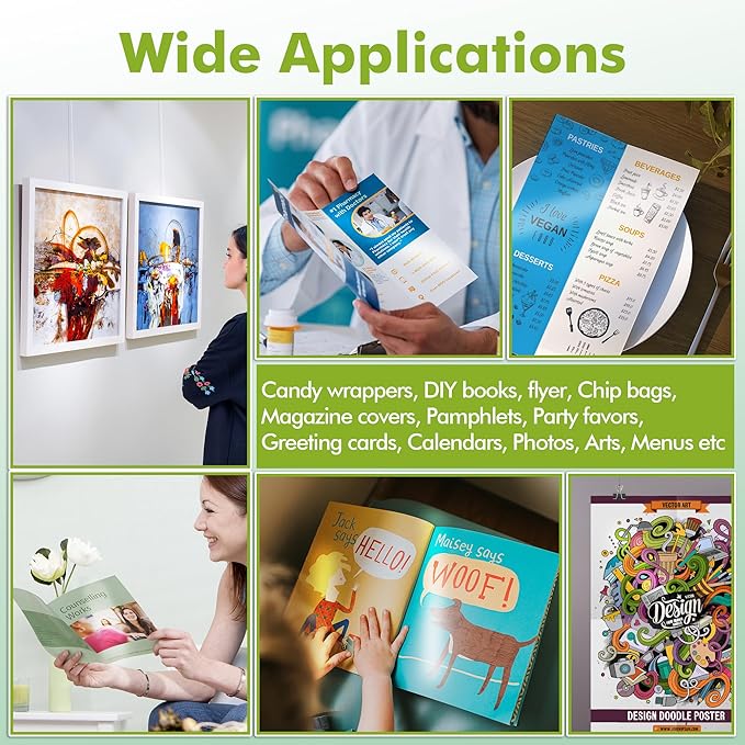 - Perfect for printing legal-size documents or panoramic photos, it offers more space for text and graphics than normal letter-size paper, idea for brochures, flyers, magazines, DIY books, reports, menus, small posters, chip bags, DIY party favors, CD inserts, calendars etc