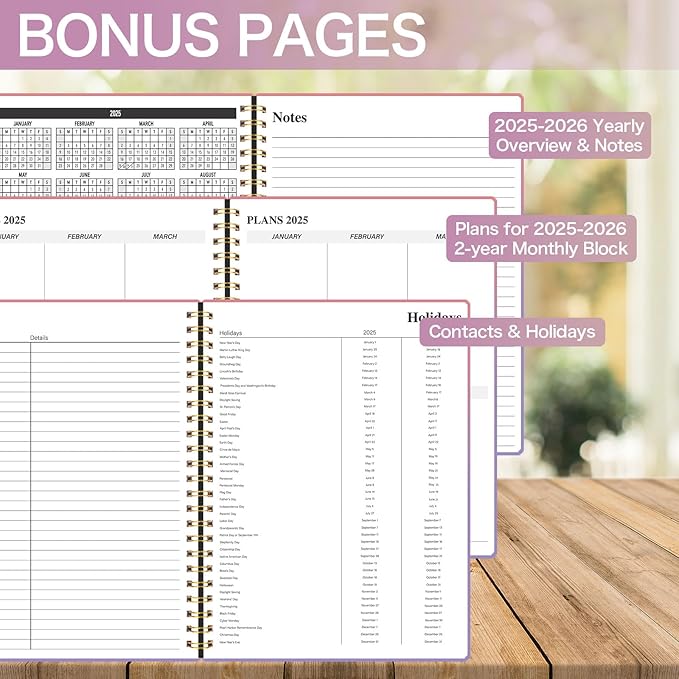 - Waterproof Sturdy Cover- The 25-26 monthly plannercomes with a waterproof and durable cover that protects all the pages inside. The sturdy cover ensures that your planner stays intact and in excellent condition, even during your busiest days