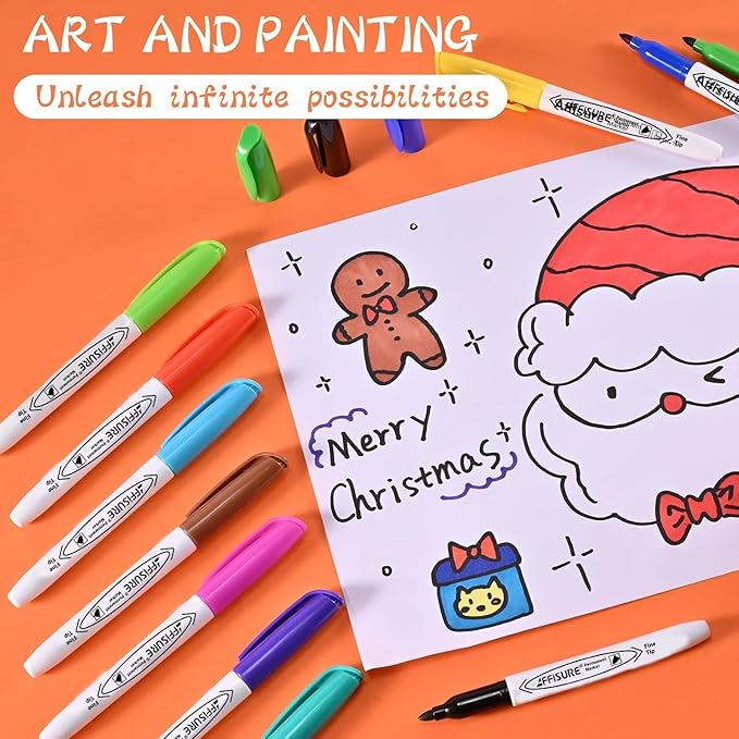 Permanent Markers Assorted Colors Set, 12 Colored Markers 84 Pack, Fine Point,Works on Wood, Plastic, Metal, and More, for Adults, Artist, Taecher, Kids