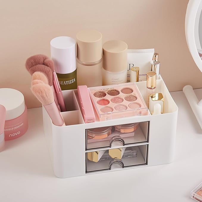 - CLASSIFIED STORAGE DESIGN: The unique desk organizer is compact and built with 6 compartments and 2 slide drawers for more stable performance. A tidy desk can speed up work and make work easier and you are more creative. Let's change from the details, stay away from the messy desktop, and stay organized.