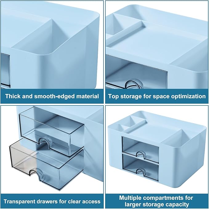 - CLASSIFIED STORAGE DESIGN: The unique desk organizer is compact and built with 6 compartments and 2 slide drawers for more stable performance. A tidy desk can speed up work and make work easier and you are more creative. Let's change from the details, stay away from the messy desktop, and stay organized.