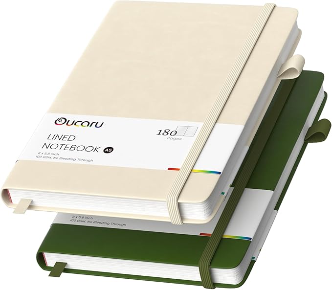 Lined Journal Notebook, 2 Pack, 180 Pages, A5 Journals for Writing, 100 GSM Thick Paper, Small Notebooks Daily Journal for Women Men Work, Business, School, Travel Supplies