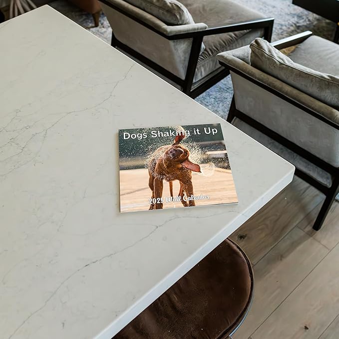 - π FUNNY DOGS SHAKING DRY β Each month showcases hilarious photos of dogs caught mid-shake, making funny faces.