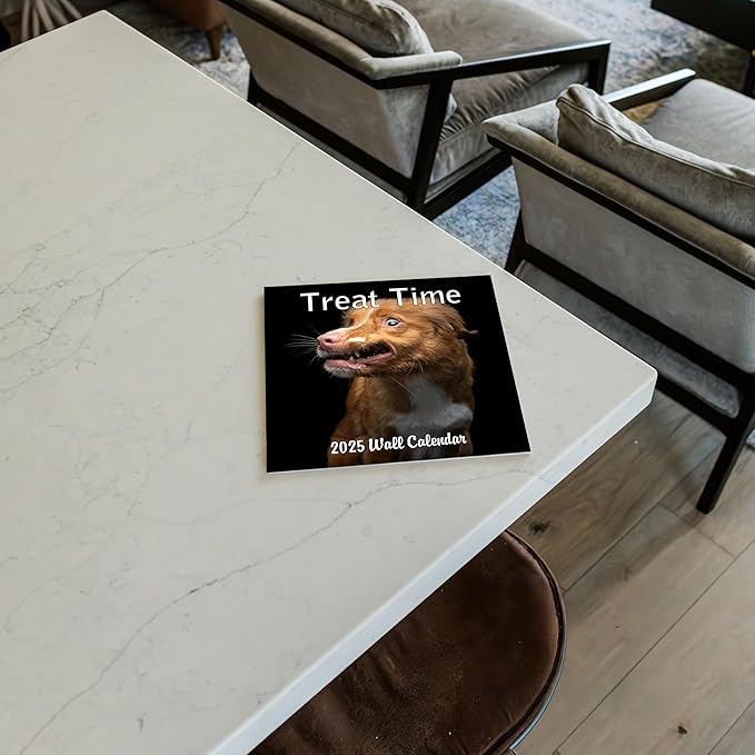 - π HILARIOUS DOG PHOTOS β Each month features dogs making funny faces as they try to catch treats, guaranteed to make you smile!