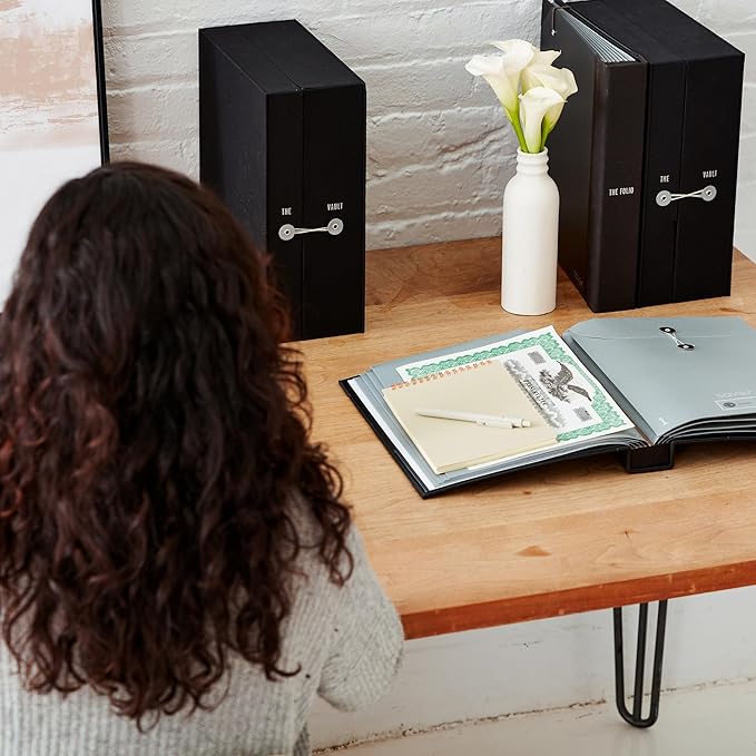 - Documents are safe: Acid-free paper, reinforced fabric binding and elastic closure protect important papers.