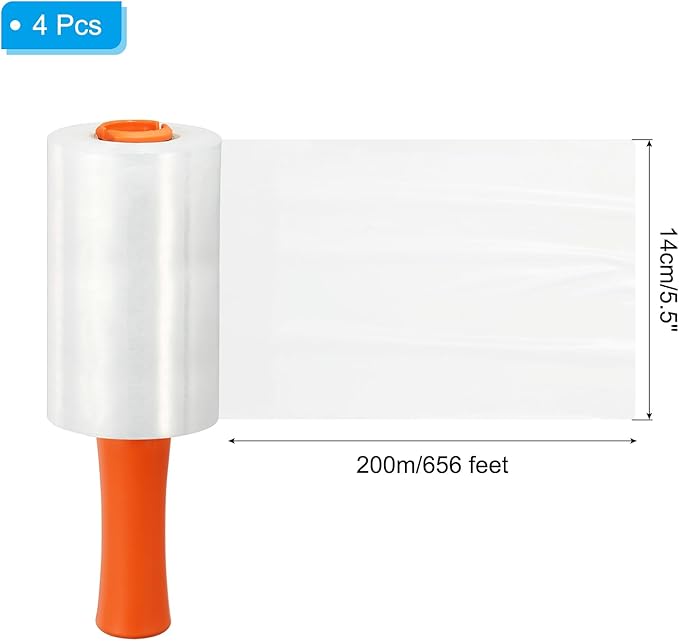 - Size: 200m x 14cm x 20mic / 656 feet x 5.5 inch x 80 gauge (L*W*Thickness); Packing List: 4 x Shrink wrap roll with handle
