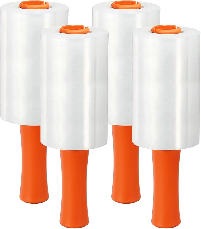 PATIKIL 5.5" x 656 Feet Stretch Wrap Roll, 4 Pack 80 Gauge/20 mic Thick Mini Shrink Stretch Film Industrial Clear Plastic Wrap with Handle for Box Packing Shipping Moving
