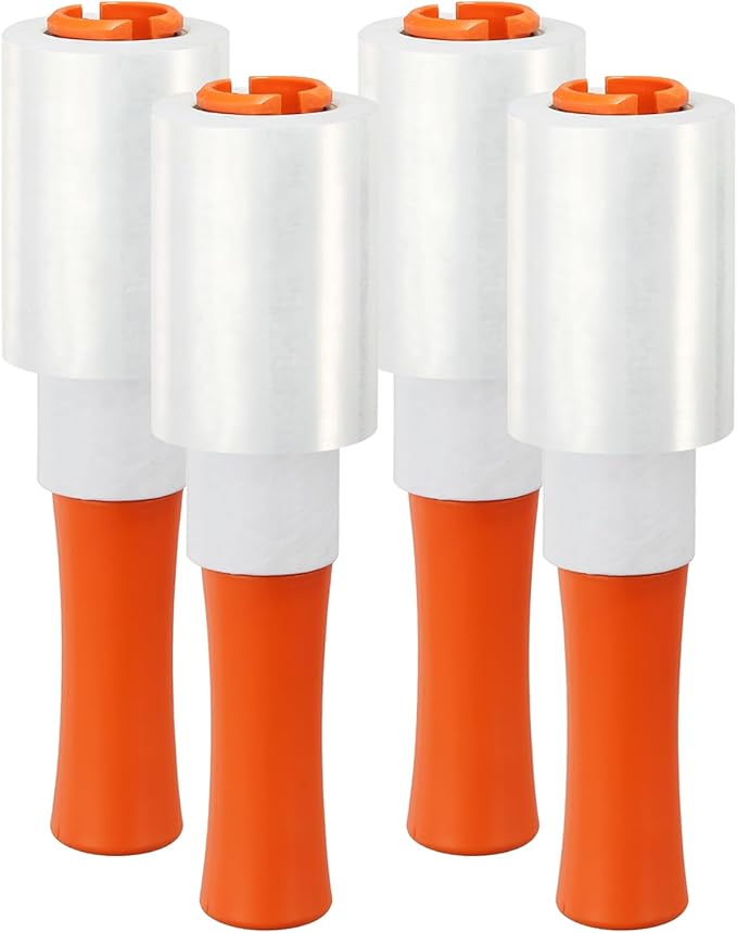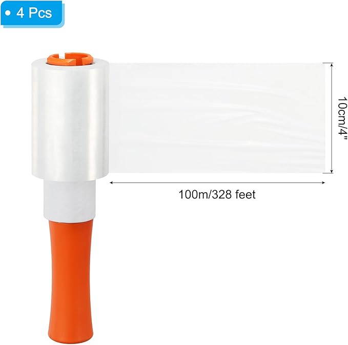 PATIKIL 4" x 328 Feet Stretch Wrap Roll, 4 Pack 80 Gauge/20 mic Thick Mini Shrink Stretch Film Industrial Clear Plastic Wrap with Handle for Box Packing Shipping Moving