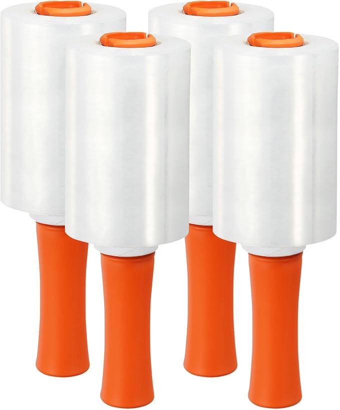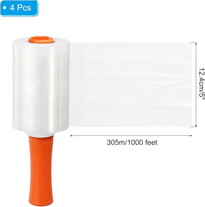 PATIKIL 5" x 1000 Feet Stretch Wrap Roll, 4 Pack 60 Gauge/15 mic Thick Shrink Stretch Film Industrial Clear Plastic Wrap with Handle for Box Packing Shipping Moving