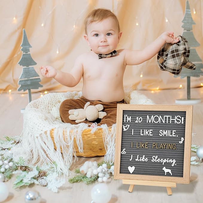 Grey Changeable Felt Letter Board with Letters, Pre Cut & Sorted 725 Letters, First Day of School Board, 10x10 Inch Message Board, Classroom Decor, Sign Board, Sign board