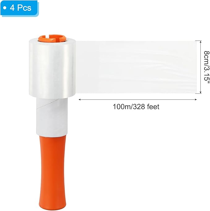 - Size: 100m x 8cm x 20mic / 328 feet x 3.15 inch x 80 gauge (L*W*Thickness); Packing List: 4 x Shrink wrap roll with handle
