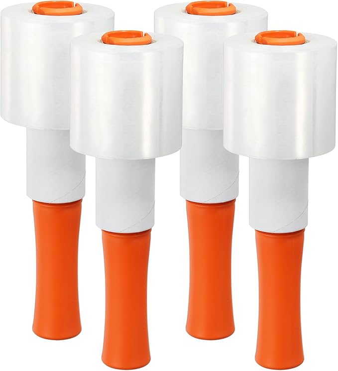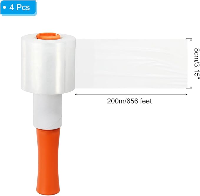 PATIKIL 3" x 656 Feet Stretch Wrap Roll, 4 Pack 80 Gauge/20 mic Thick Mini Shrink Stretch Film Industrial Clear Plastic Wrap with Handle for Box Packing Shipping Moving