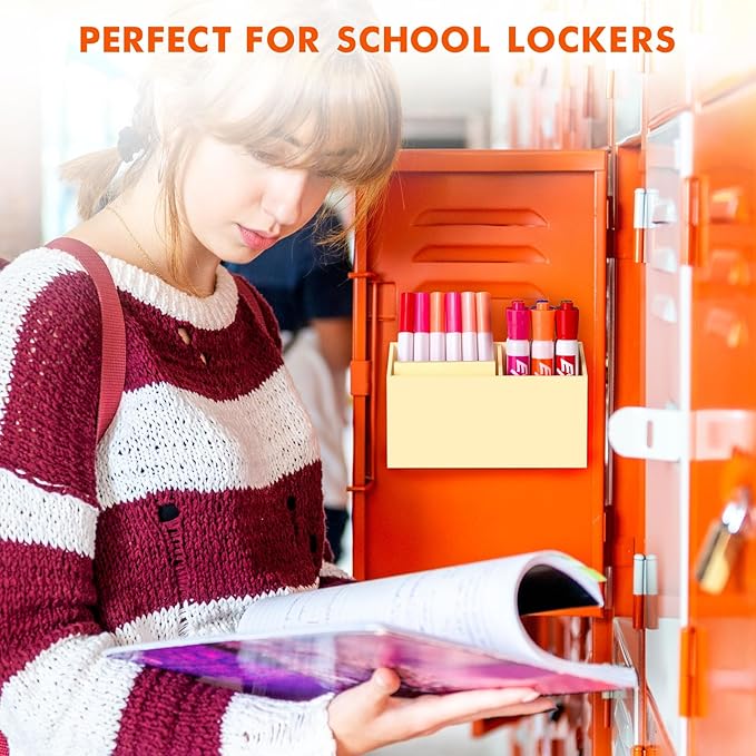 BEYGORM Magnetic Dry Erase Marker Holder for Whiteboard,Non-slip Acrylic Magnet Pen Holder for Fridge Refrigerator,Locker Organizer for Work,Locker Accessories,Pencil Cup for Desk(Beige)