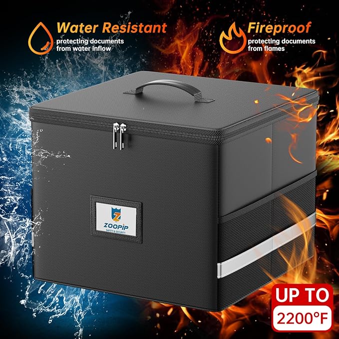 - 🔥🔥【Fireproof and Waterproof】ZOOPIP Fireproof box with zipper is made of not sticky Dust-proof Silicone coated fiberglass, which can withstand temperatures up to 2000°F. Fireproof Money Saving Binder has been passed by SGS TEST:UL94 VTM-0 Certified. At the same time, the glass fiber has excellent waterproof performance. In most cases, our binder can withstand the impact of water.