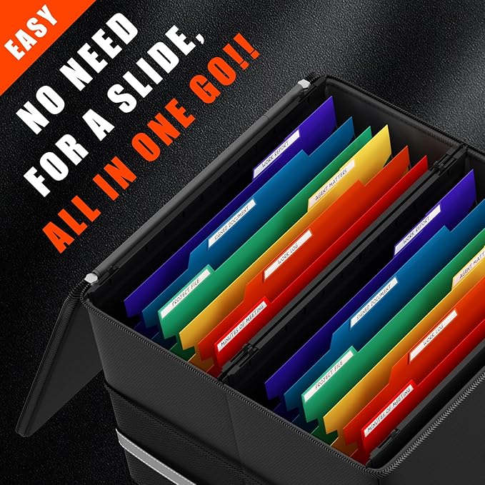 Fireproof File Box with Hanging File Folders,Accordion Pockets,Hanging File Organizer for Letter Size(Folders+Box-13.8"*12.2''*9.8'')