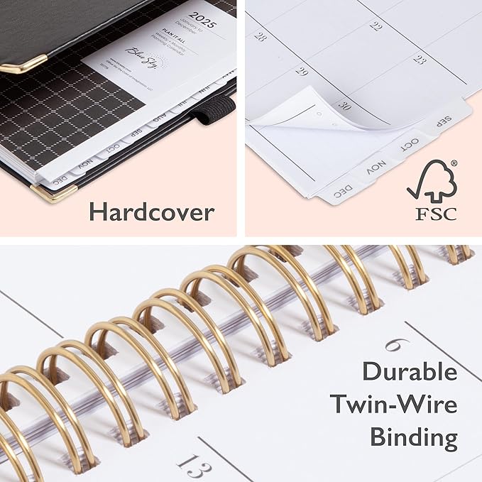 Blue Sky 2025 Weekly and Monthly Planner Calendar, January 2025 - December 2025, 5" x 8", Hardcover, Laminated Tabs, Wirebound, Storage Pocket, Black Faux Leather (Black- 2025, 5" x 8")