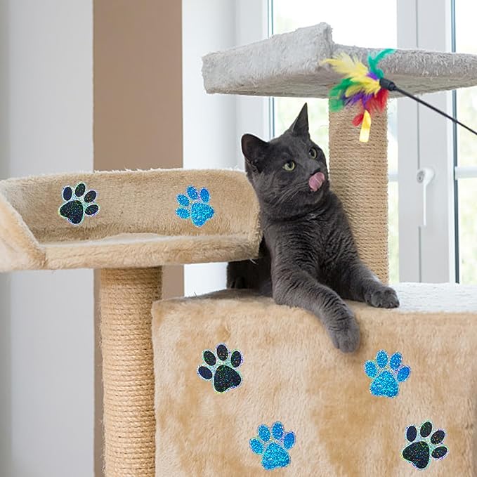 - [SPARKLE MULTICOLOR PAW STICKERS]- Black sparkle paw prints stickers, sparkling. It reminds people of the lively and brisk steps of a puppy, bringing a relaxed and happy mood.