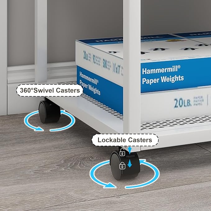 - 【Portable & Movable】The office printer stand adopts universal wheel design, which is light to push and pull, and can be easily moved to any place. Furthermore, each of the castors is lockable to provide high stability when need to keep the printer cart in position.