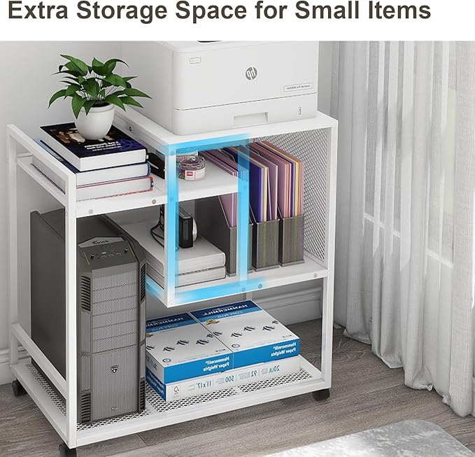 - 【Multi-functional Organizer Shelf】The printer stand with storage will meet any of your needs to fit in the office organization, living room, bedroom, school. It’s a printer table, office storage rack, computer tower stand, paper shredder stand, book shelf, music station. The stylish design is perfectly compatible with any decor to meet your needs and adds a touch of vintage charm to your home office.