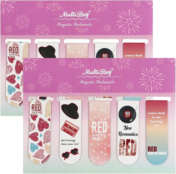10Pcs Magnetic Bookmarks T-S Bookmarks Page Markers for Fans Readers, Women, Men, Book Lovers, Students Teachers, Funny Office Supplies Stationery Gifts Used in Office, School, Home (Red)