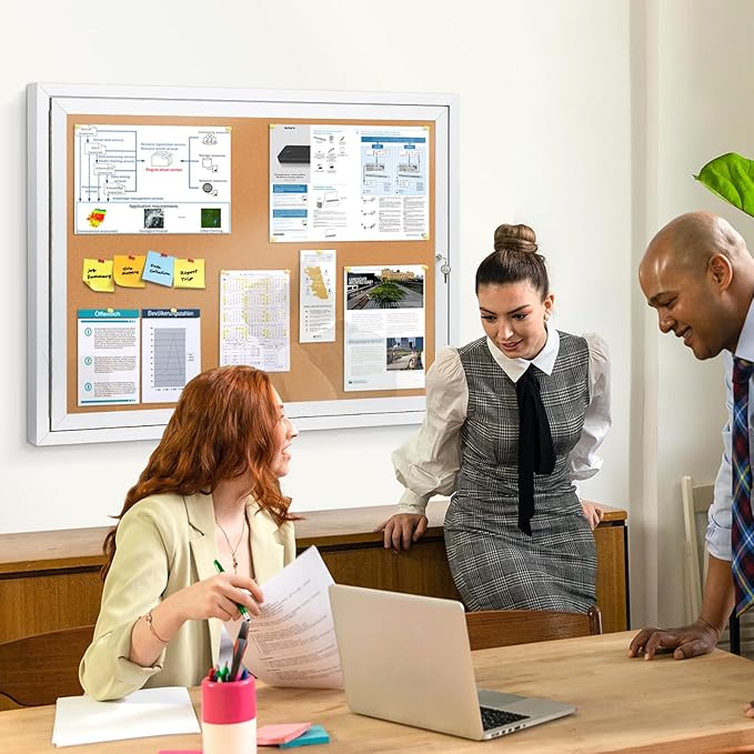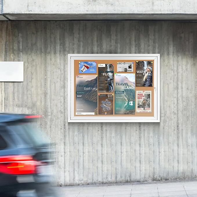 - 💧OUTDOOR USE —Weather resistant cabinet construction features aluminum frame with a satin finish, full-length piano hinges add strength and durability to the door frame. Drainage holes in the bottom and sealed backing means you can mount the board outdoors.