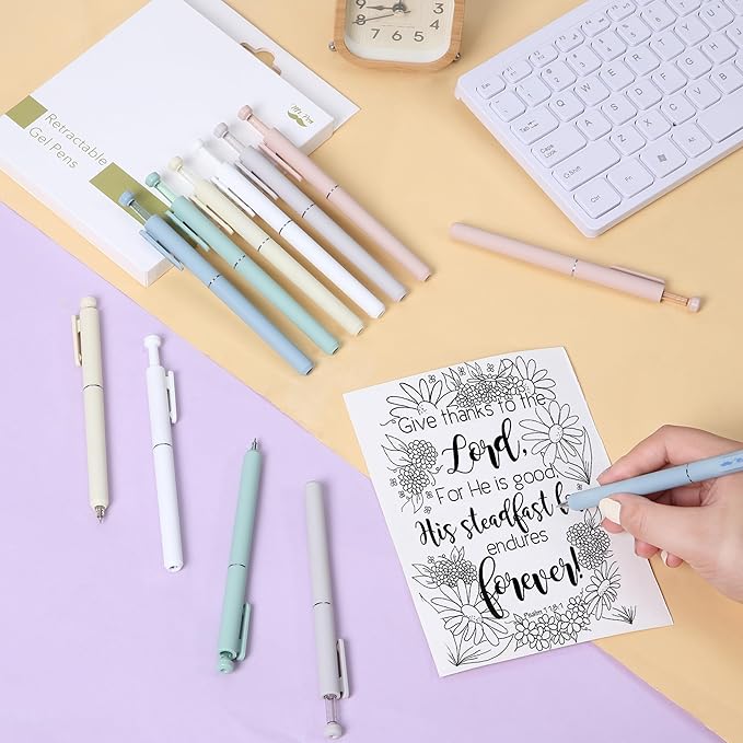 Mr. Pen- Retractable Gel Pens, 12 Pack, Black Ink, Soft Pastel Barrel Gel Pens Fine Point 0.5mm, Retractable Pen, Cute Pen