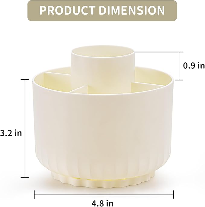 - 【Multipurpose Desktop Organizer】: This rotating storage organizer is perfect for pencils, cosmetics, bathroom necessities, toiletries, and even kitchen utensils. Try it in your craft room, playroom, laundry/utility room, and even inside bathroom cabinets or under the sink; Store extra office supplies like painting pens, correction tape, scissors, TV Remote, and more; Even headphones or a charger will no longer be lying around in the future! Maximize your vertical space and keep your desk clear