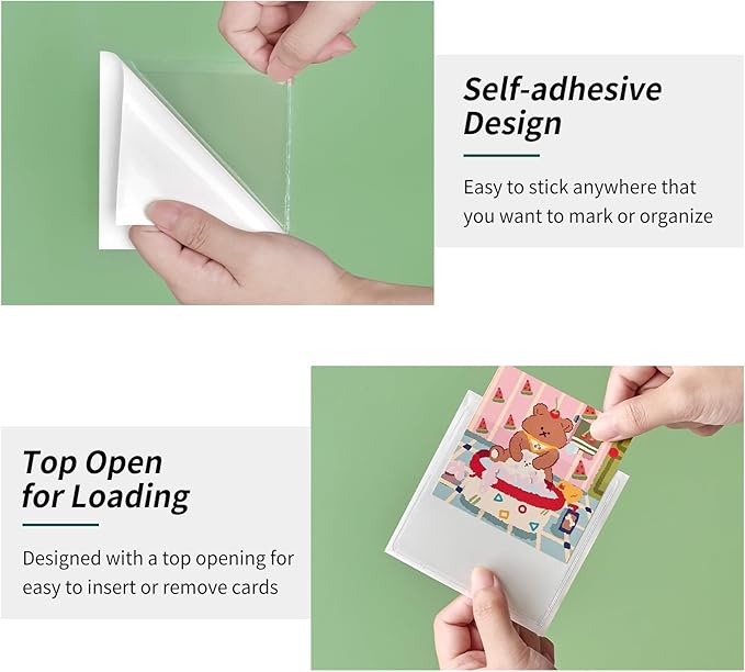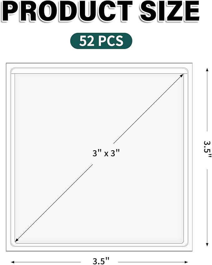 - Package Includes: 52 pack clear adhesive label pockets with top opening for easy to insert or remove index cards. Ideal size for 3 x 3 inch index cards
