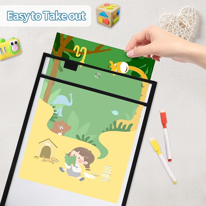 - Premium Material: Black dry erase pockets are reusable, which can withstand lots of student wear and tear.