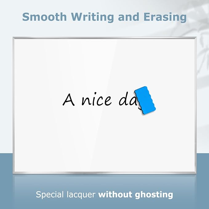 - 【Superior Quality】The hanging white board has durable aluminum frame, galvanized back, and screw-fixed corner. Stain-resistant lacquered surface is smooth for writing and erasing