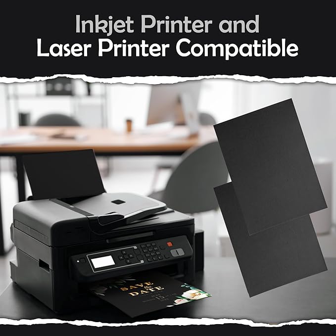 - 🖨️ 【Laser & Inkjet Compatible】 Easily print on these blank black cards with any laser or inkjet printer. Perfect for creating personalized business cards, invitations, or postcards for mailing.