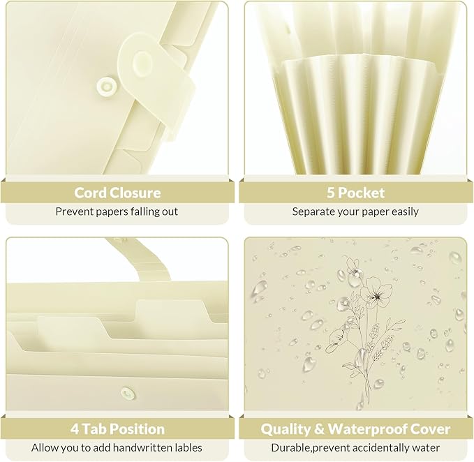 - Cute Solid Color Design. Expanding file folder has 5 expandable pockets. And tab positions for labels, organized