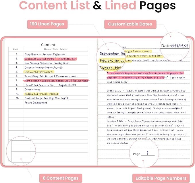 - Lay-Flat Design for Effortless Writing: The 180° lay-flat design makes writing a breeze for both left- and right-handed users. Whether you're jotting down quick notes or composing longer entries, this notebook provides total ease and comfort on any surface.