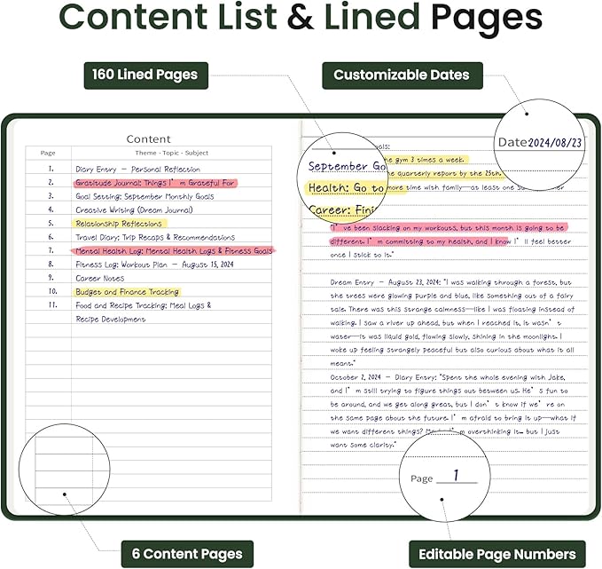 - Lay-Flat Design for Effortless Writing: The 180° lay-flat design makes writing a breeze for both left- and right-handed users. Whether you're jotting down quick notes or composing longer entries, this notebook provides total ease and comfort on any surface.
