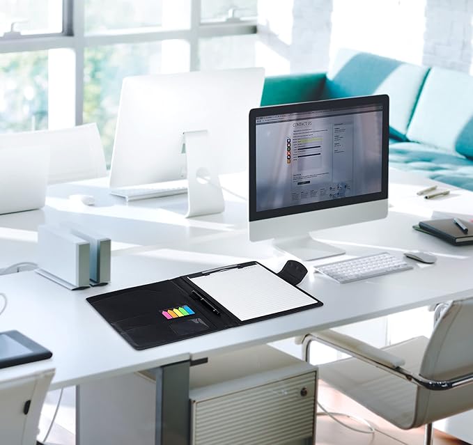 A4 Padfolio Clipboard Folder Portfolio,PU Leather Interview Resume Folder with Magnetic,Document Organizer,Business Card Holder,Letter-Sized Notepad Legal Pad Holder for Men Women School Office,Black