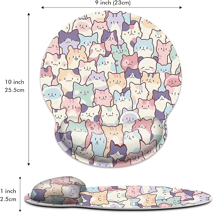 Ergonomic Mouse Pad with Wrist Support,Cute Colorful Cats Mouse Pad with Wrist Rest,Relieve Wrist Pain Mousepad Non-Slip Rubber Base,Mouse Pads for Desk,Computers,Laptop,Office,Home,Accessories