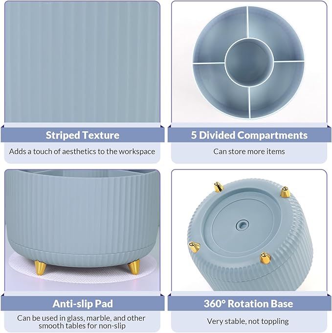 SKYDUE 360 Degree Rotating Desk Organizer, Dual-Purpose Pencil Pen Holder with 5 Slots, Pencil Cup for Office, School, Home (Airy Blue)