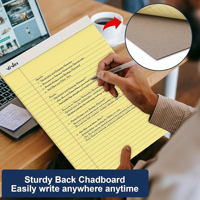 - 【Practical size】Each legal pad is 8.5 x 11 inches, the letter size that is easy to carry and store, and fits binders, folders, and subject notebooks in normal size. And the canary yellow paper is very friendly to the eyes and helps reduce eye fatigue while writing.