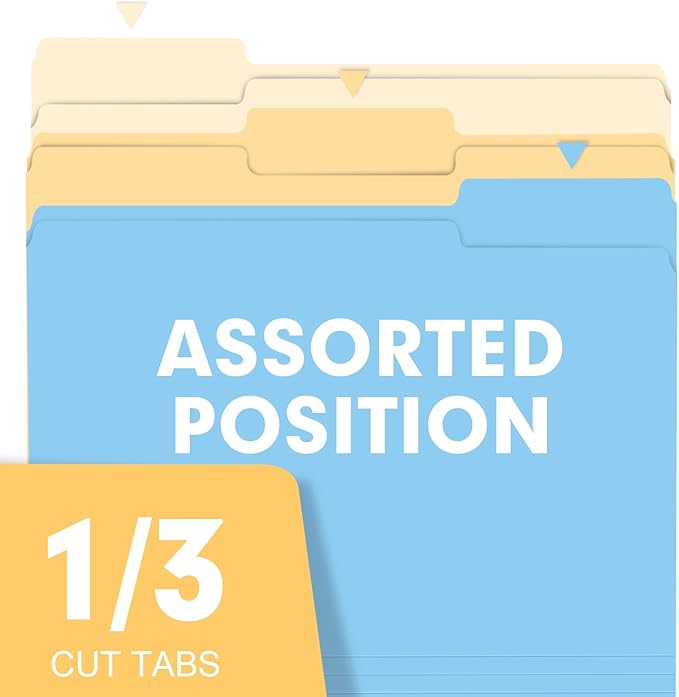 - 1/3 CUT TAB: Easy organization and quick access to documents with a 1/3-cut tab filing folders, customize your own cover for different topics and to sort your files by category, date, or priority