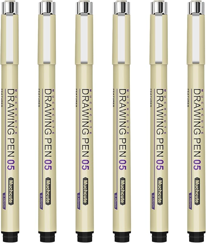 Muchcute 05 Fine Point Writing Pens: 6 Black 0.45mm Thin Micron Pen 05 No Bleed Bible Journaling Study Supplies Annotation Smooth Waterproof Micro Line Needle Tip Fineliner Gel Felt Ink Markers Stuff