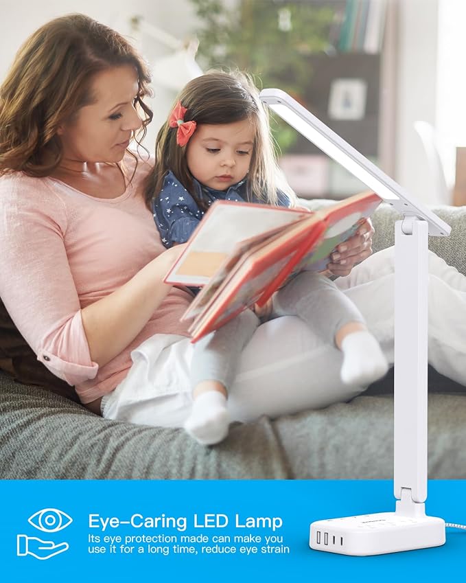 - 【 USB-C & USB Ports & AC Outlet 10 Ft Power Strip 】- The small desk lamp for bedroom is equipped with 2 USB-C port, 2 USB-A ports and 3 3-prong AC outlets, which can stably maintain 5V 3.1A output, make your phone, tablet, kindle, watch, humidifier and other electronic devices are charged whether the night stand light lamp is on or off, building your own working station. Fully save your time and space.