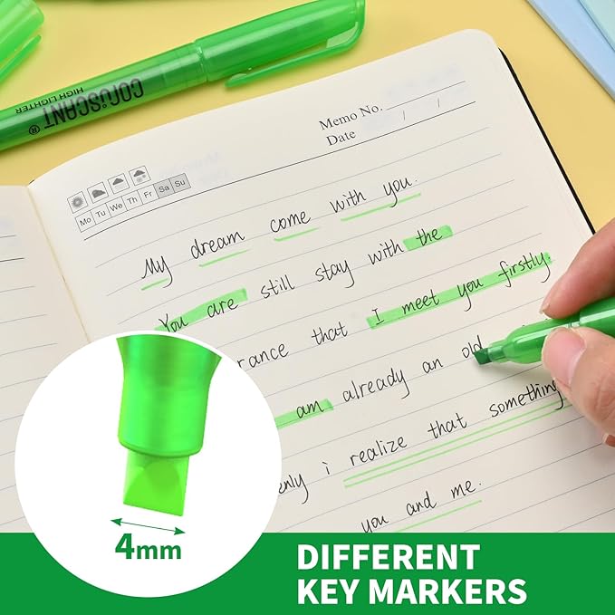 • RELIABLE & SAFE :Highlighter quality meets AMCI standards,non-toxic.The set contains 40 green highlighters bulk.