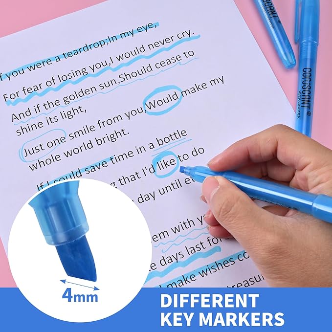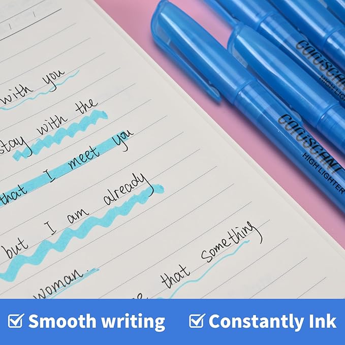 • TRANSLUCENT INK: Made with semi-transparent ink, this blue highlighter ensures clear visibility of text underneath while still providing vibrant color to enhance your notes and documents.