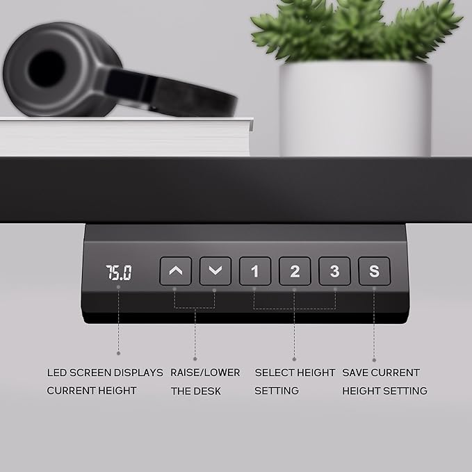 - Intuitive Control & Quiet Operation: Effortlessly adjust your desk height with our intuitive control panel, featuring 3 memory presets for personalized settings. Operate in tranquility with our ultra-quiet motor at just 45 dB, ensuring a distraction-free environment for optimal focus and productivity