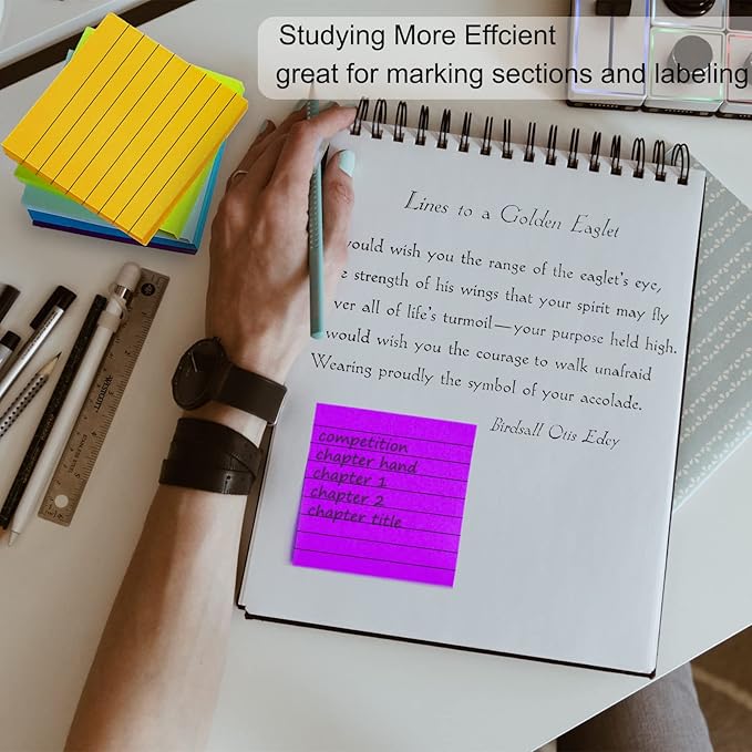 - 8 BRIGHT COLORS: 3x3 lined sticky notes include 8 bright colors, fluorescent yellow, fluorescent green, lake blue, rose red, fluorescent powder, fluorescent orange, blue, purple, Bright sticky notes for dispenser making your message more noticeable, practical to use.