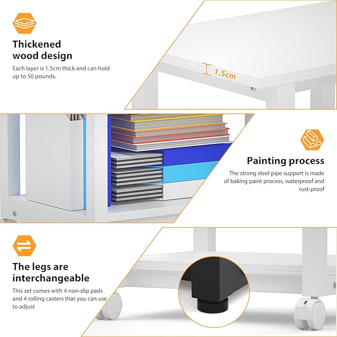 - 【 Large Storage Space 】The maximum size of this bracket product is L 19.5''x W16''x H 22'', and each layer can withstand a weight of 50 pounds. It is specifically designed for large and heavy-duty printers, scanners, and other large machinery. At the same time, the 2-layer storage rack provides spacious space, allowing paper, toner, and other office supplies to be neatly placed within reach for both work and study.